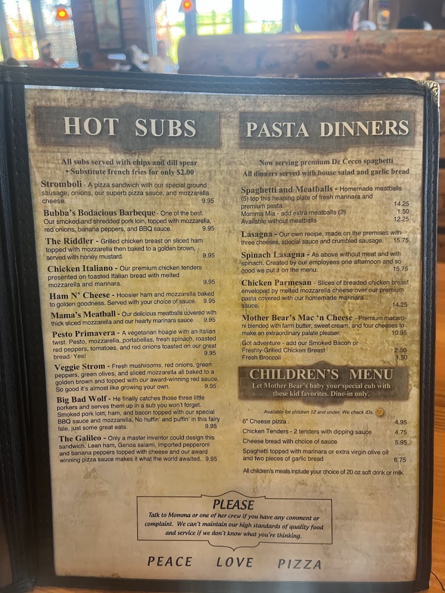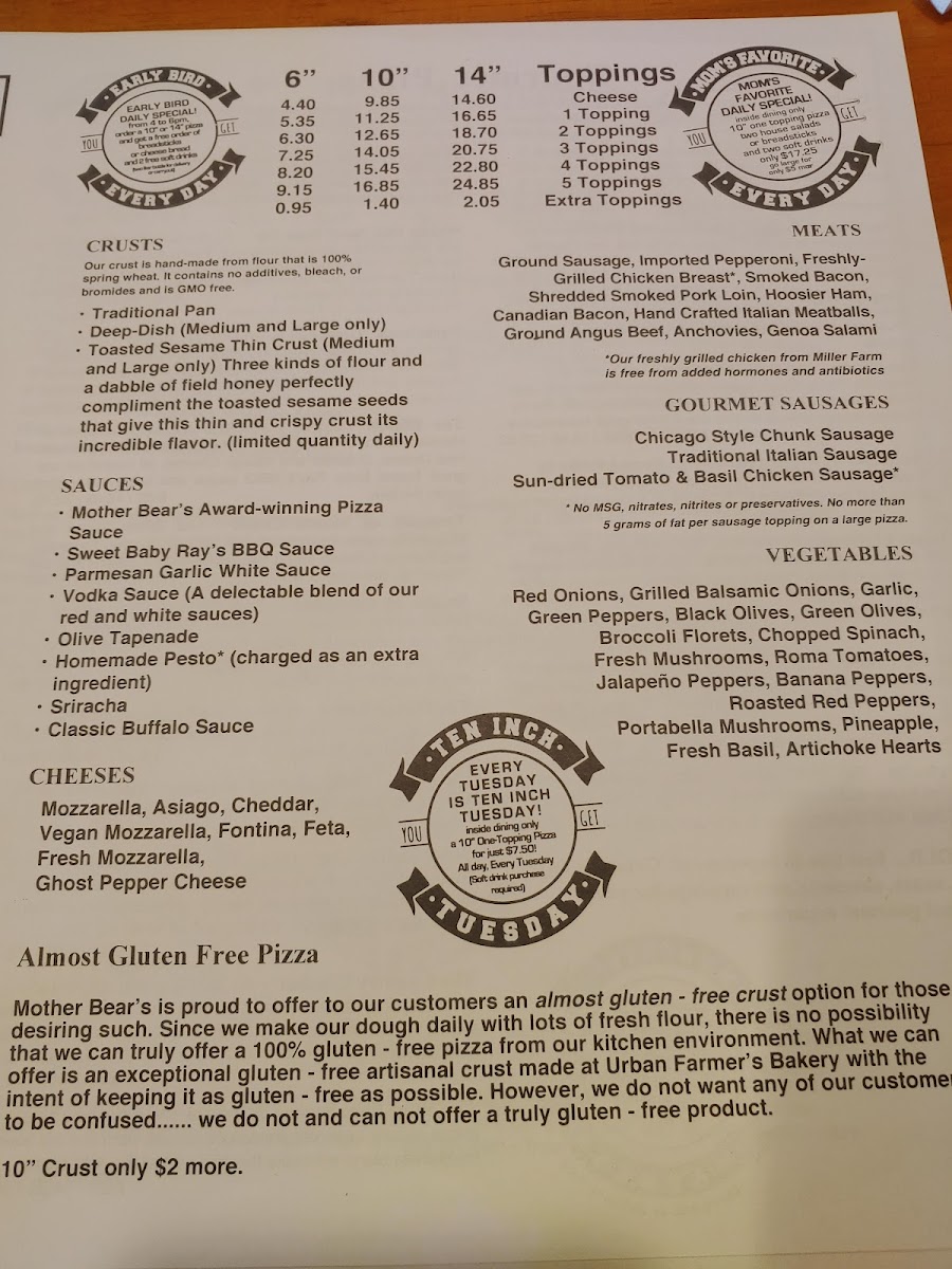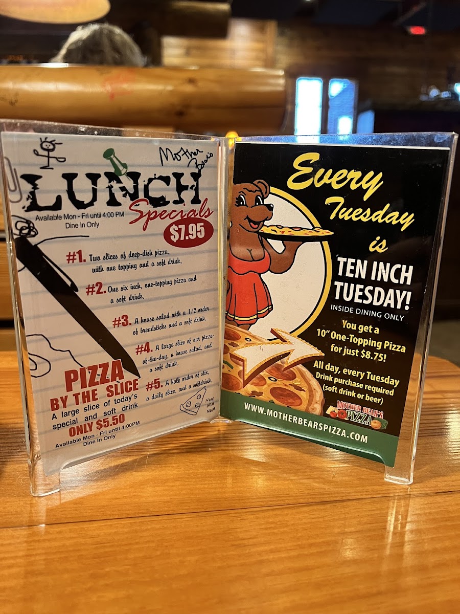 You’ll find the Mother Bear's Pizza West Menu packed with the kind of comfort food that makes you want to linger a little longer, especially after stepping into their spot at 2980 W Whitehall Crossing Blvd in Bloomington. The lineup leans into hearty favorites, starting with pizzas that range from classic, cheesy staples to loaded creations piled high with toppings. As you browse, you’ll notice how easily one dish leads you to the next - maybe garlic bread to warm things up, then a specialty pie, and eventually a slice of something sweet to finish it off.